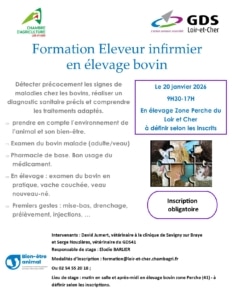 Catégorie : Formation Date : 20/01/2026 Horaires : de 9h30 à 17h00 Durée : 1 jourModalités d'inscription :Inscriptions par mail à formation@loir-et-cher.chambagri.fr ou au 02 54 55 20 18 https://www.gdscentre-valdeloire.fr/wp-content/uploads/logo-GDS-Centre.jpg 0 0 Ludovic https://www.gdscentre-valdeloire.fr/wp-content/uploads/logo-GDS-Centre.jpg Ludovic2026-01-06 17:07:562026-01-06 17:07:5641 – formation éleveur infirmier en élevage bovin