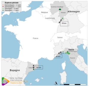 La France est actuellement exempte de fièvre porcine africaine. Toutefois, la circulation active du virus en Europe constitue une menace réelle pour le territoire national. Des cas ont en effet été confirmés chez des sangliers en Allemagne et en Italie, chacun à environ 60 km des frontières françaises, ainsi qu’en Espagne à 94 km.