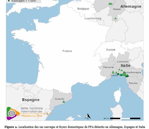 En Espagne, les détections de la maladie dans la faune sauvage se poursuivent : 103 sangliers ont été identifiés depuis la première détection le 26/11/2025. L’origine de la contamination n’est pas connue. En effet, le génotype de la souche circulant en Espagne n’est pas le même que ceux circulants dans les autres États membres de l’Union européenne.
